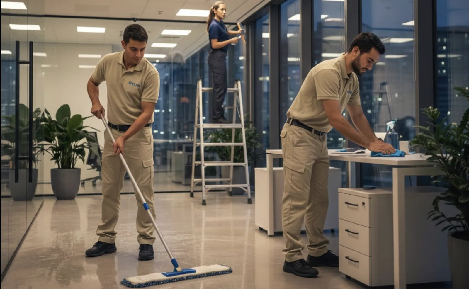Nuestro servicio integral incluye: barrido y trapeado de pisos, aspirado de alfombras, limpieza y desinfección de sanitarios, limpieza de escritorios y superficies, vaciado de botes de basura, limpieza de vidrios interiores, sanitización de áreas comunes, limpieza de cocinetas y comedores, y atención a áreas específicas según sus necesidades.